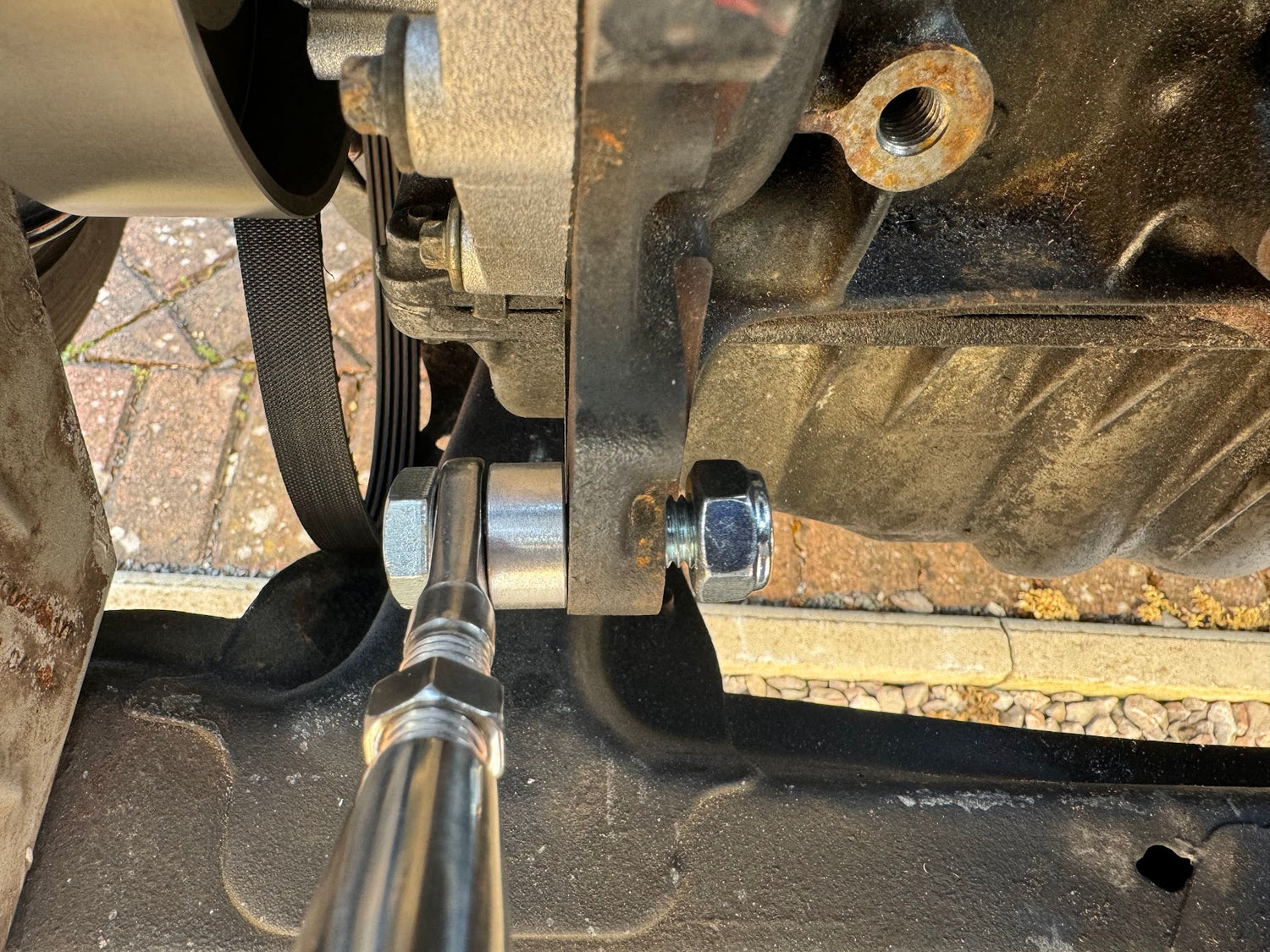 - Top alternator nut and bolt for tensioner, 13mm
