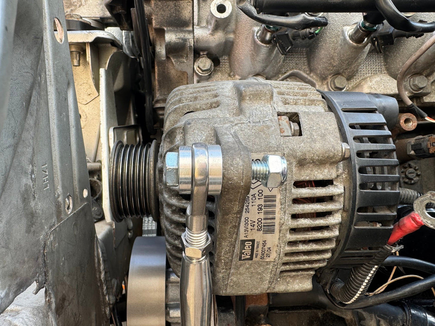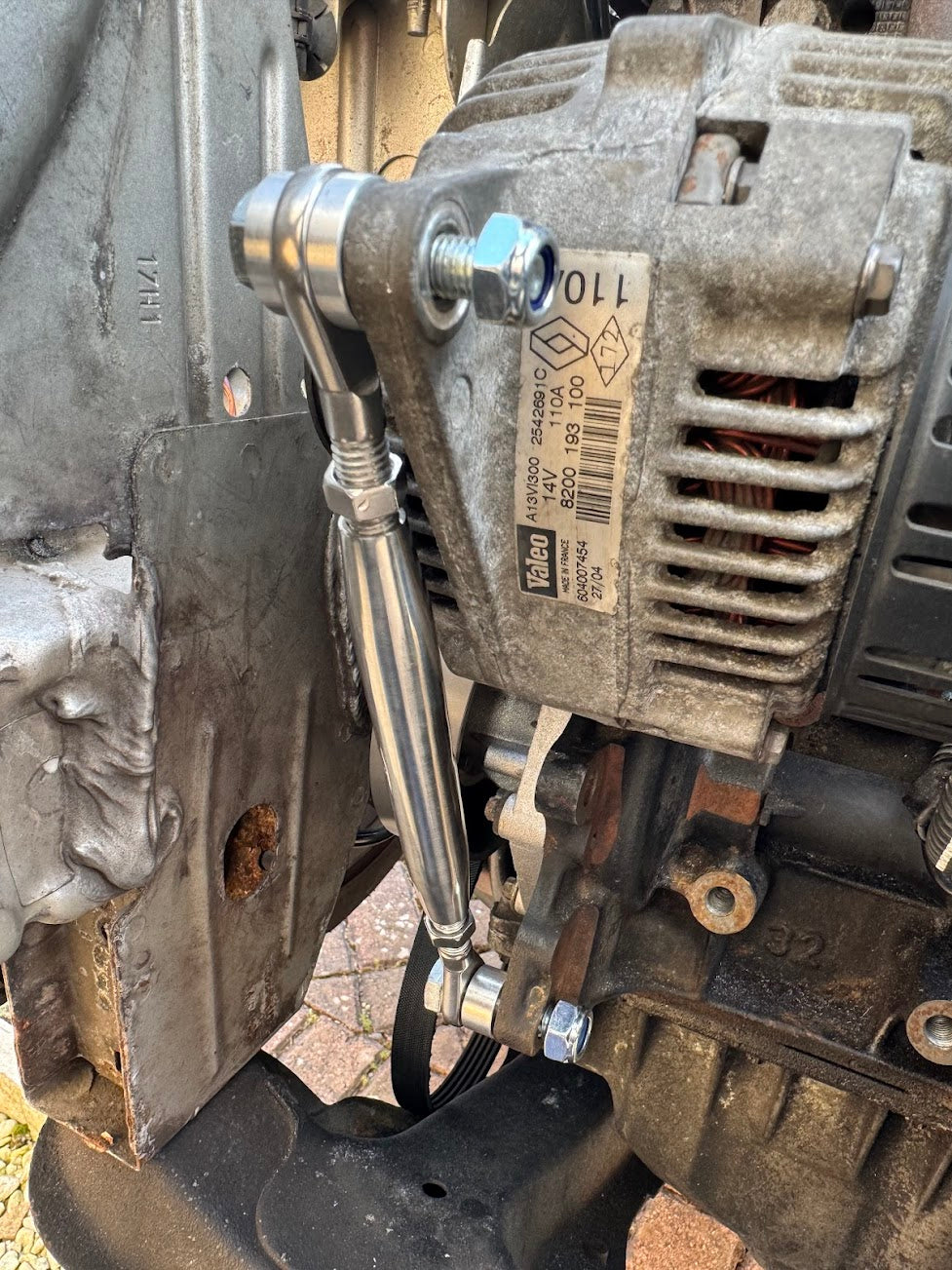 - Top alternator bolt through bracket, 16mm